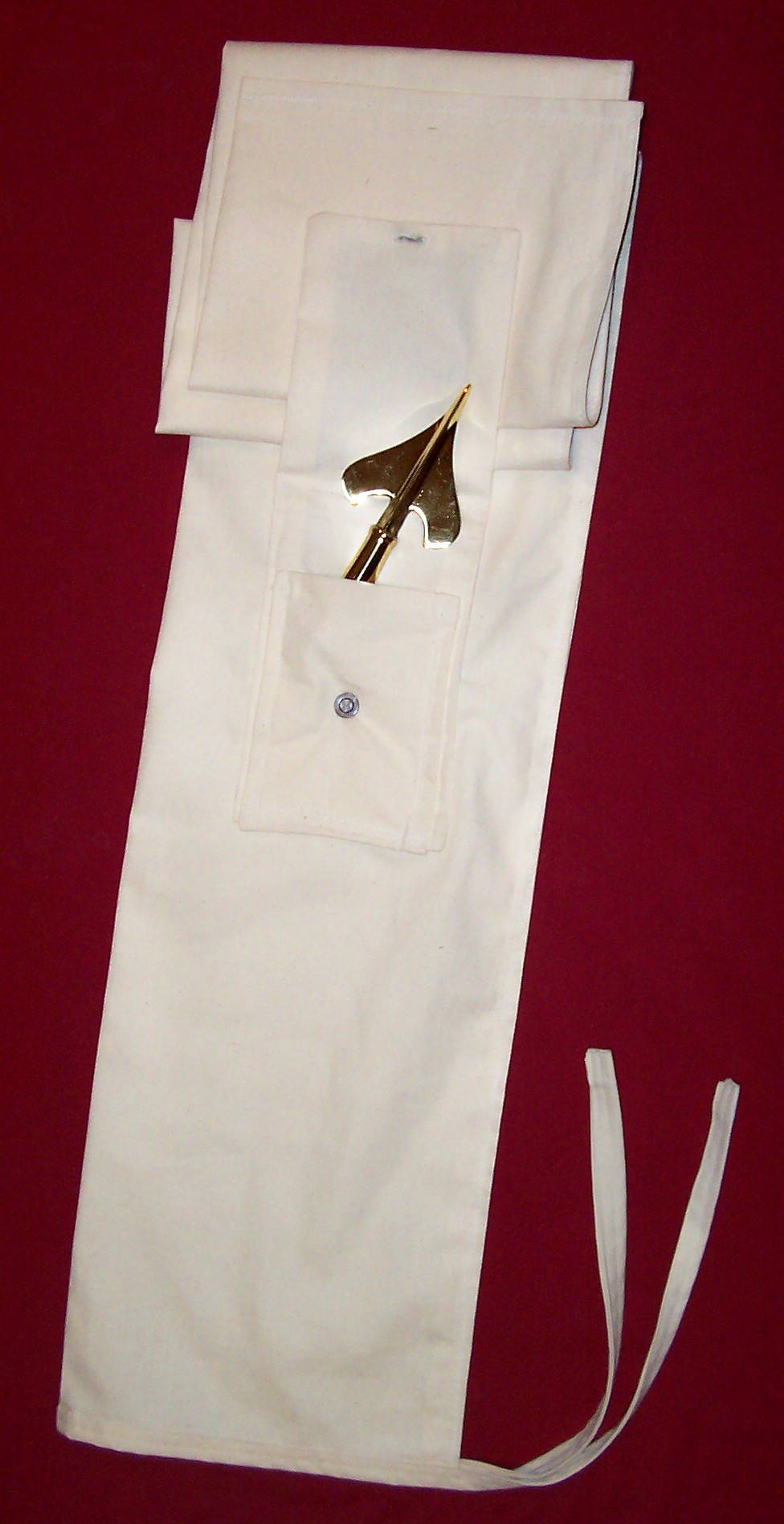 This cover fits over the rolled up flag and slides over the flag pole and can be tied off at the bottom.